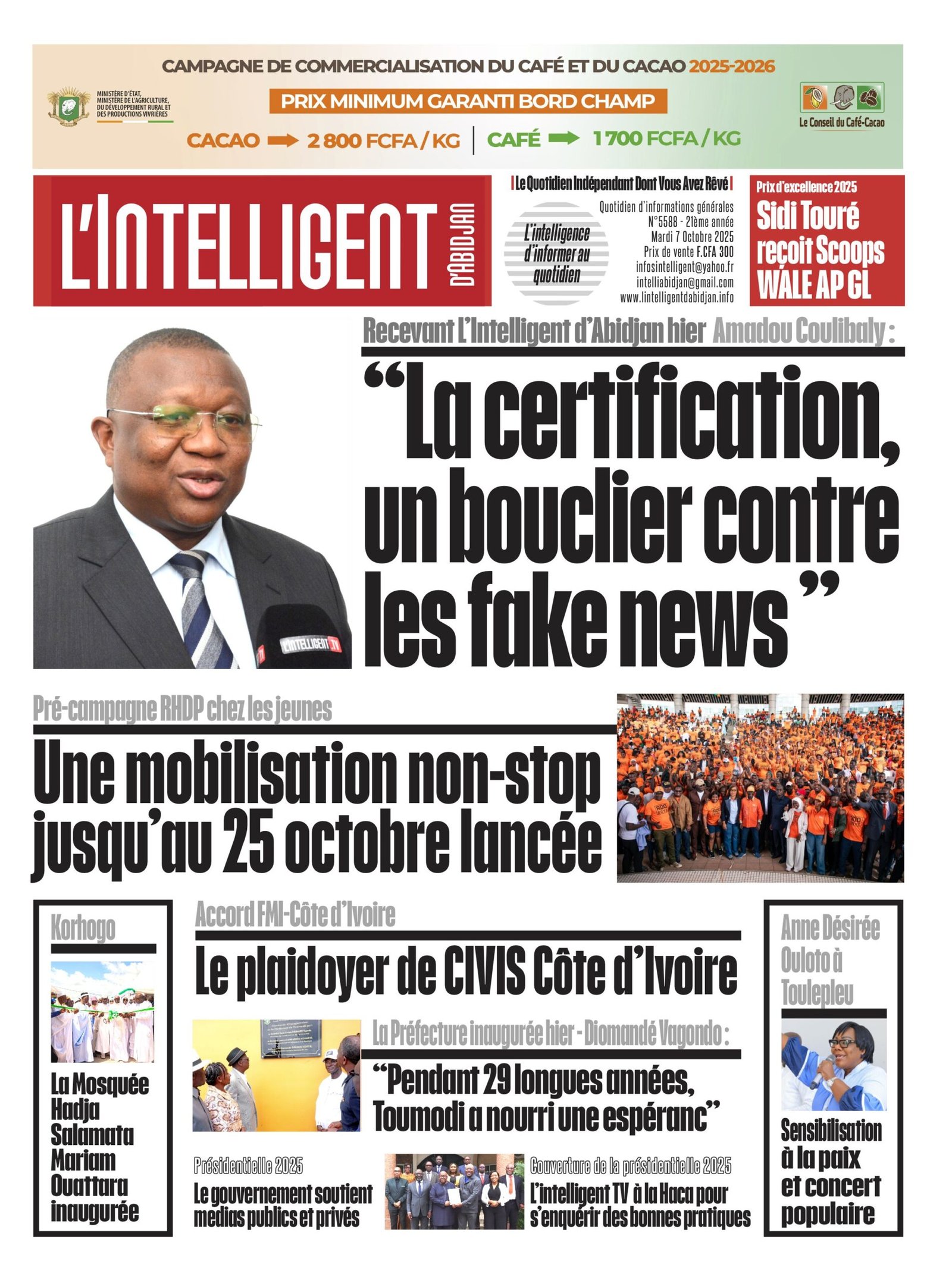 CIVIS Côte d’Ivoire sur l’accord FMI-Côte d’Ivoire, L’Intelligent TV à la HACA pour s’enquérir des bonnes pratiques en matière de couverture de la présidentielle 2025. Le gouvernement, de son côté, apporte un appui aux médias publics et privés dans le même objectif, ce que Vagondo Diomandé a dit à Toumodi; La Mosquée Hadja Salamata Mariam Ouattara inaugurée à Korhogo.