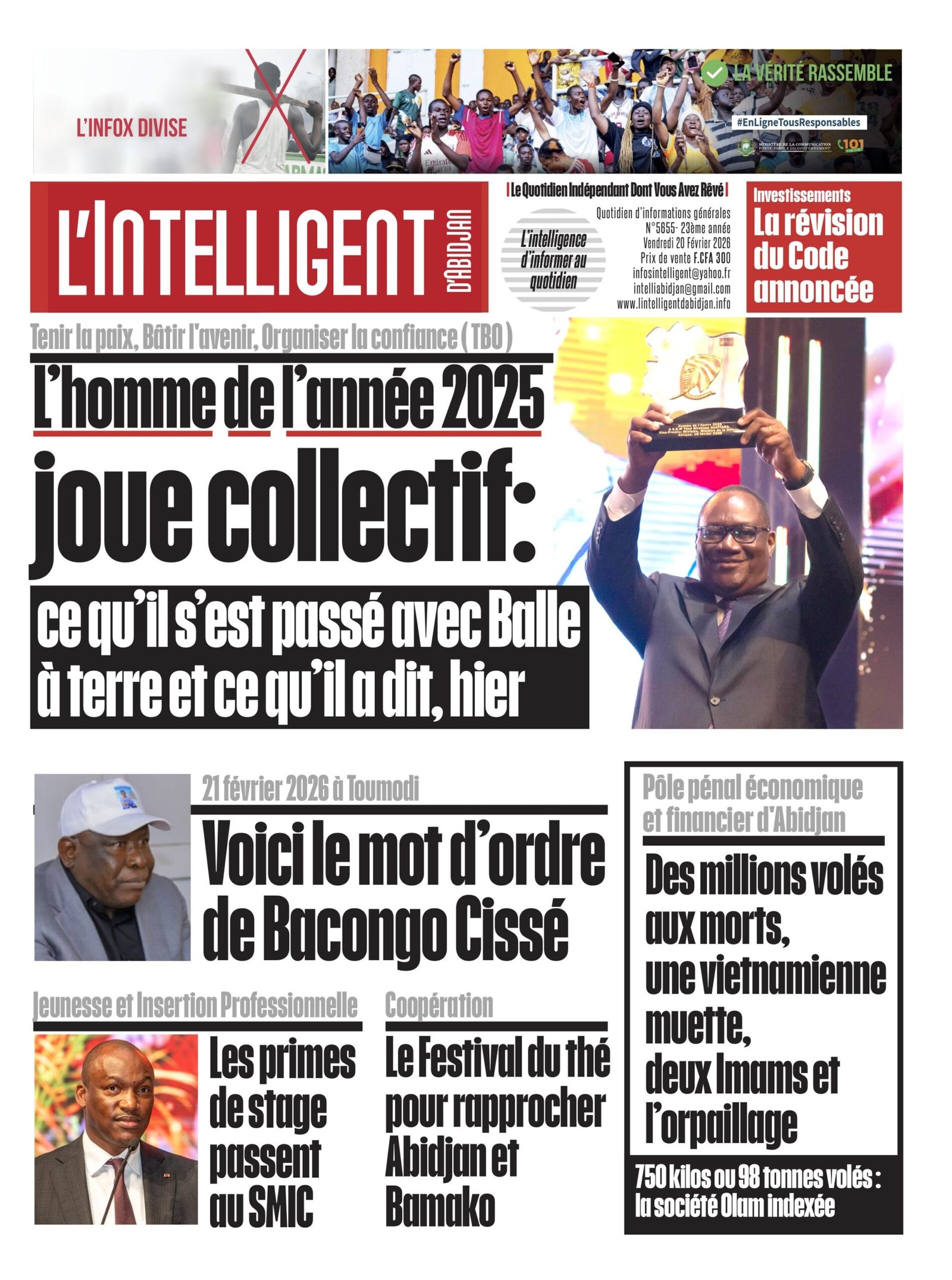 Le vice-Premier ministre Téné Birahima Ouattara, ministre de la Défense, a été désigné Homme de l’année 2025 par l’ONG Balle à Terre. Il a reçu la distinction le jeudi 19 février 2026, des mains de la ministre de la Culture et de la Francophonie Françoise Remarck lors d’une cérémonie officielle au Sofitel Hôtel Ivoire à Abidjan-Cocody, en présence du Premier ministre Robert Beugré Mambé et de plusieurs personnalités, dont des membres du gouvernement. Qu’est-ce qu’il s’est passé avec Balle à terre et quel est le message qui a été livré par le vice-Premier ministre à cette occasion ?